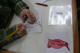We also played a game and sang a song about penguins and their eggs. We took turns holding the eggs on our feet and waddling around. (Made of felt and stuffing)